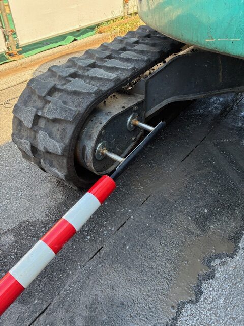 - バックホー使用時に作業員がキャタピラに挟まれるのを防止します。