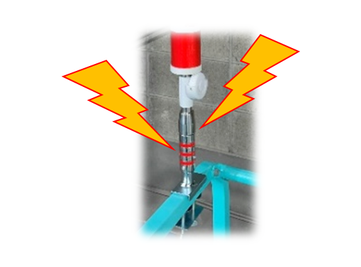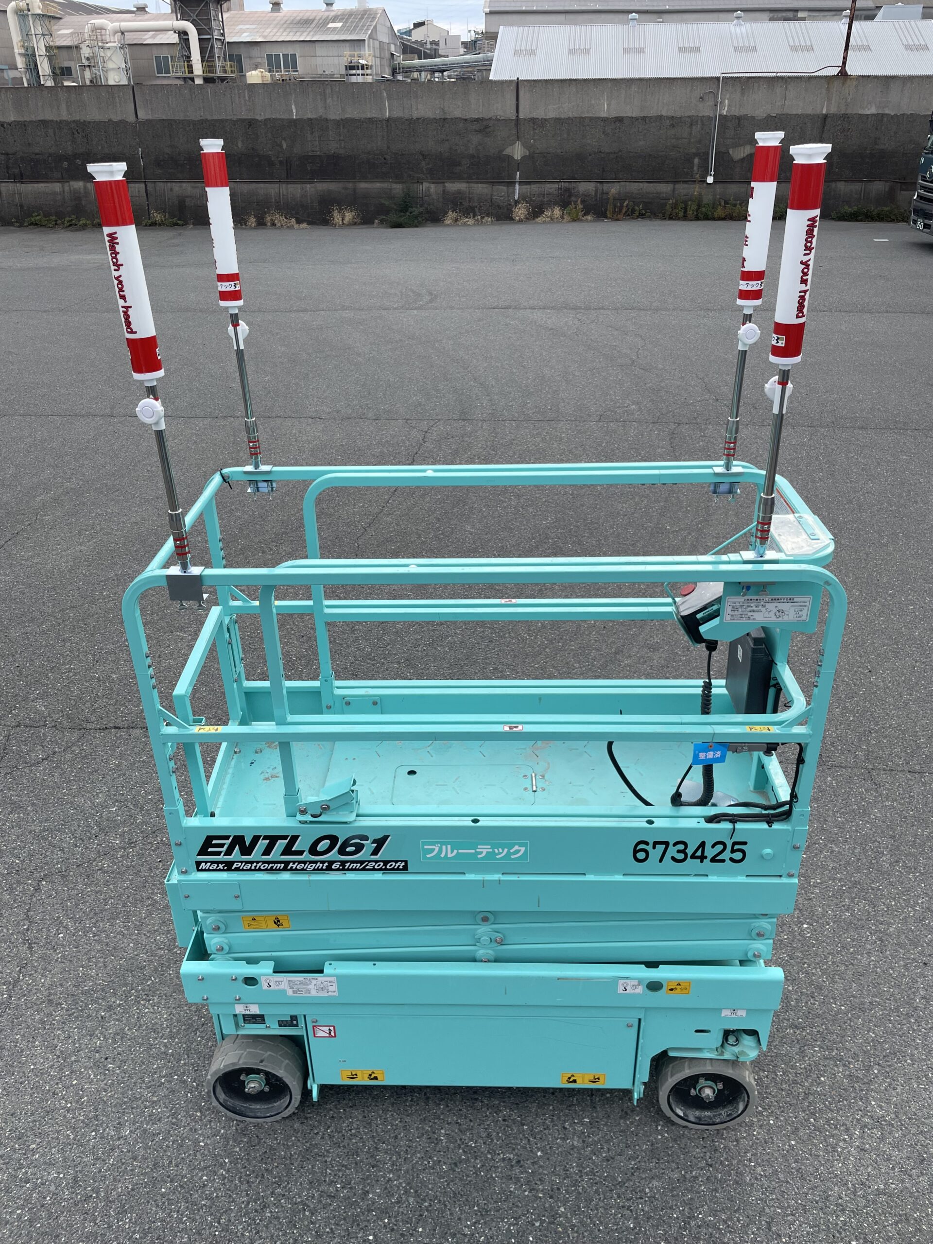 - 先端が天井や梁などに当たり、高所作業車が上昇を続けると、警報ブザーが鳴って危険を知らせてくれます。